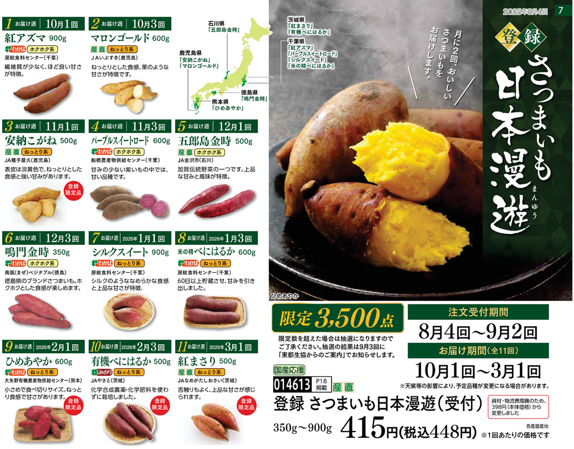 登録商品『さつまいも日本漫遊』お届け予定品種のお知らせ
